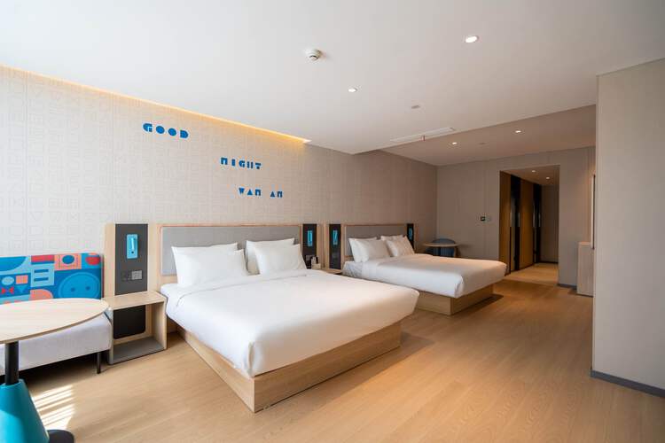 如家neo4.0是首旅如家酒店集团推出的全新产品,旨在通过时尚焕新的设计、多元社交空间和客房质感的升级,引入了多项智能科技,包括前台自助入住机、智能送物机器人、智能客房语音助手小度、智能电视系统和LG智能洗衣房等,为住店旅客提供个性化服务,实现服务一键响应?。 酒店内设有多种温馨舒适的客房,床垫选用国内十大品牌之一的梦百合记忆棉床垫,部分房型更配备了梦百合0压房石墨烯厚垫。此外,酒店还提供早餐服务,中式和西式早餐应有尽有,其中包括备受好评的“如家这碗面”。 酒店地处延吉市最繁华地带,距离公交站点仅100米,即可前往多个网红景点,线路四通八达。,距延边大学网红墙步行10分钟,距西市场5步行分钟,距飞机场打车20分钟,距高铁站打车30分钟,商业设施齐全,无论是购物、餐饮还是娱乐都极为便捷。酒店周围环绕着各式各样的商铺和美食街,让您在享受舒适住宿的同时,也能尽情体验城市的繁华与活力。 我们致力于为宾客提供上好的服务,为您在异乡打造一个温馨的避风港,让您感受到家的温暖。