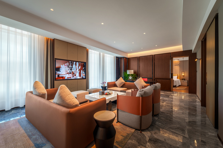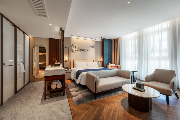 【建国铂萃酒店】是首旅如家酒店集团旗下高端国风精致生活方式酒店品牌。建国铂萃酒店承袭北京建国饭店高端血统,以“萃依东方,领观世界”的设计理念为基调,围绕东方美学、精致餐饮和中国精造三大品牌核心特色,从心定义中国精致! 建国铂萃—赣州兴国红兴谷研学营地店是首旅酒店集团与江西交投集团旗下江西昌泰高速公路有限责任公司共同打造。酒店位于兴国县红兴谷研学营地园区内,临近兴国县政府。红兴谷研学营地主要有学生国防军事爱国主义研学旅行、机关红色党建、企业团建拓展、亲子周末游等综合业态,毗邻兴国红色旅游景点将军园、苏区干部好作风纪念园、潋江书院、兴国大圣寺、三僚风水文化景区等景点。酒店远离繁华闹市区,距离兴国站、兴国西站、兴国汽车站、兴国高速出口均在20分钟车程内;是赣州及周边城市宾客微度假的不二之选。 酒店分为研学楼、迎宾楼和宴会楼三栋,共计152间客房;配有萃璟·餐厅、萃宴·中餐包厢、多功能厅、健身房、自助洗衣房等设施,特设1200㎡土拨鼠沉浸式儿童乐园;是一家集住宿、餐饮、宴会、会议、康乐为一体的高品质综合型酒店,能够满足城市高端商务、政府接待、休闲度假、亲子研学等不同群体的需求。