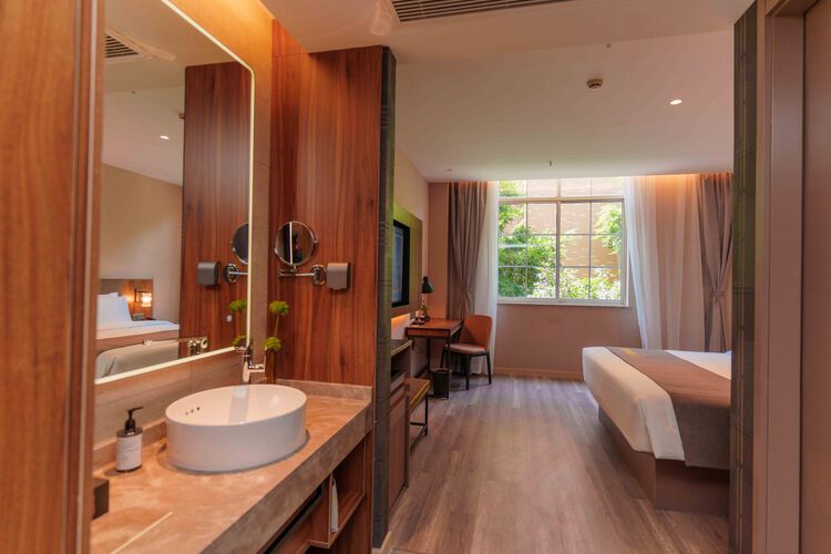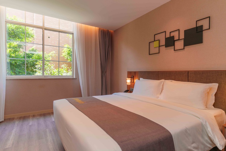 如家精选德阳五洲广场演艺中心店地处德阳市旌阳区翠屏山路6号,属德阳中央商务区,紧邻五洲广场,旌阳区政务中心,德阳市演艺中心,广播电视台,四川建筑职业技术学院,四川工程职业技术学院,德阳市第三中学,德阳市青少年宫,地理位置优越,闹中取静。距离德阳市机场候机楼300米;成都地铁3号线摆渡车站点400米,旅程出行便捷。酒店整体英伦建筑风格,为商旅生活添加无限乐趣。房间临靠住宅小区,采光优越,南北通透,同时地处演艺中心附近,有繁华闹市中,独取一隅宁静的悠然自得。中西式自助早餐,机器人送物,自助洗衣房,自助咖啡畅饮,舒适的商务中心,前台贵重物品寄存,行李寄存,外卖接收,叫醒服务。床上用品舒服亲肤,让您疲惫的一天都能舒适入睡,被子轻薄不粘身,犹如云朵裹在身上轻盈,床垫软硬适中采用“0”压床垫,“0”压根据人的体温决定床垫舒适度。 服务贴心,温馨舒适,宾至如归,24小时前台服务,酒店为您提供闲雅、舒适的商务洽谈空间,免费现磨浓香咖啡,不管您是商务出差或是旅游游玩,如家精选德阳五洲广场演艺中心店都是您的首选!给您“如家”的入住体验!如家精选德阳五洲广场演艺中心店欢迎您回家!