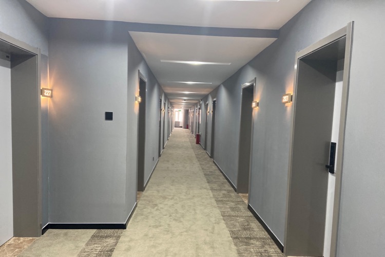 睿柏云酒店位于海阳市中心商业圈,海阳路48号,于2022年6月装修开业,酒店周边3公里内有美食一条街、购物广场、医院、银行、网咖、影院等,酒店配有大型免费停车场,出行方便;酒店内设有免费宽带网络,无线WIFI,空调,24小时热水、早餐厅等设施设备,酒店内配有商务单间、影音房、标准间、棋牌室、套房、榻榻米房等房型,房间配备国标棉织品时尚简约舒适,让您有一个好的睡眠环境,是您商务出差,旅游的理想下榻酒店。