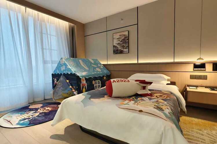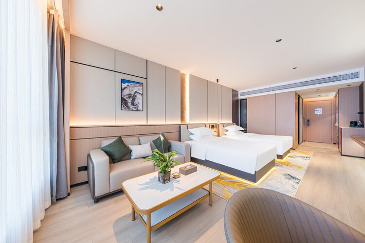 酒店位于“文昌发祥地,中国两弹城”的梓潼县文昌大道南段东辰幼儿园对面崇文半月一号楼,酒店是首旅酒店集团旗下中高端精选服务品牌酒店。周边有梓潼青少年宫,全民活动中心,东辰学校(幼儿园,小学,初中),滨江公园,四川文化艺术学院,市政公园,亲水公园,崇文湖,崇文广场等,环境清幽,文化底蕴浓厚。景观房窗外便是崇文湖,崇文湖有音乐喷泉,灯光秀,喊泉等可供欣赏和游玩。以现代轻奢风为核心设计理念,大堂采用开放式空间布局,大厅中央有山脉造型吊灯,“山脉”下有代表崇文半月的“云和月”独特造型,一楼设置休闲区自助咖啡厅及干净,明朗,舒适的早餐厅。酒店配置有送物机器人为提供服务,更好的诠释了精选品牌入住的科技感与良好的体验感;客房配备全屋智能系统,液晶电视,干湿分离淋浴区等设施。提供免费无线WIFI、行李寄存、免费停车,24小时前台服务等 。酒店选用高品质装修材料,拥有豪华大床房,豪华双床房,景观大床房,景观套房等多种房型,满足各类客人的选择需求。