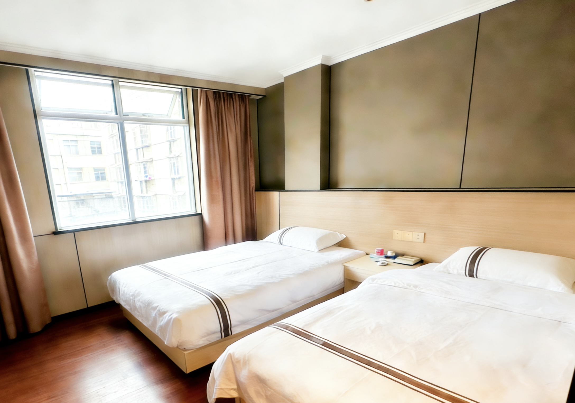 酒店位于九一南路交通主干道,地处于体育中心和中山路之间(步行5分钟路程),毗邻万宝广场:距人民医院300左右,距老汽车站步行约8分钟,距离区政府1公里,距市政府约3公里,距火车站约2.5公里,距万达约3公里,距离工业区约3.5公里,地理位置优越,是通往市区各处的中心纽区,本土酒店装修风格现代简约,适合商务,出差人士,青年及工薪阶层青睐消费水平的商务经济型酒店,拥有独立的露天停车场,商务型经济酒服务,舒适的房间,期待您的到来。经过一座城,寻觅一间房,消去您满身的疲劳,我们将以热情的服务!