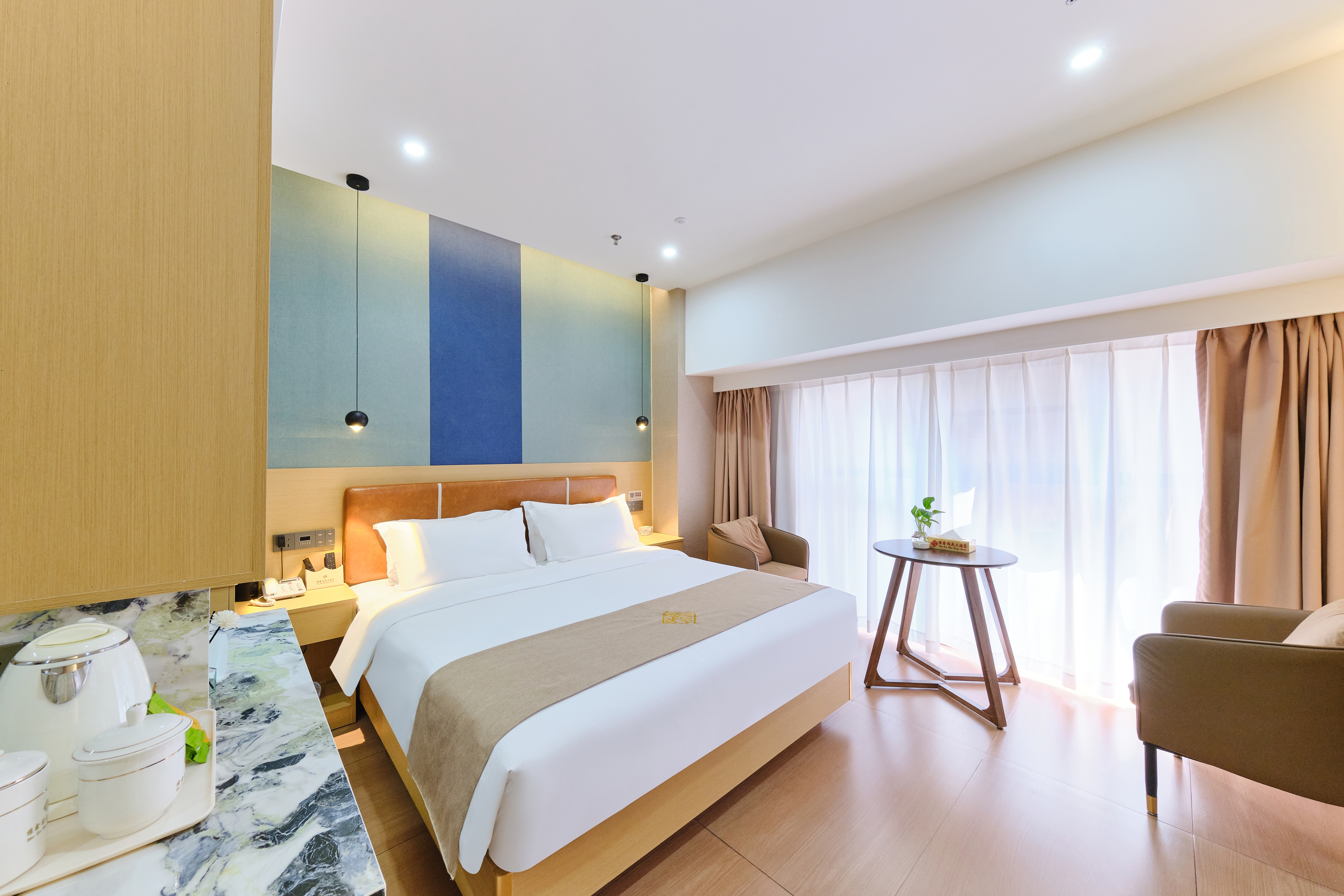 酒店位于万源市城市之星商业体,打造星级酒店,注册资金1000万元。公司成立之初,投资3900万于万源市金缔财富中心A3层。<br>酒店设有各种智能房型、茶艺、简餐、西餐,是一家高品质酒店。酒店现设有双标、单标、豪华单间、商务间和行政套房、亲子房、婚房等房型,可接待130人左右的入住,现有在职工18人,酒店结合万源市的发展规划,首创开展品质自助旅游接待、特色文化体验,以优雅的环境营造出尊贵的品味和浓厚的人文气息,并结合高品质的人性化服务,机器人智能化服务(早中晚餐都可以由机器人配送到房间),为宾客精心打造一个温暖舒适的生活家园。 <br>融合了恒久精致与现代奢华,酒店亲情至上,品味感动的个性化服务。休闲感受巴山画屏、红城万源的独特魅力。其中全景落地窗、无窗的房间采用双向新风系统灯膜打造独有风情,让您在车水马龙的环境中享受我们酒店带给您的一丝宁静。<br>酒店以核心品牌文化为基础,向所有宾客承诺以下品质保证:1.友善的员工素养、安静的环境、感动心灵的服务。 2.优雅舒适的环境、高品质的视觉享受,建筑面积3200余平方米,地下室设负1设有酒店专用停车场(温馨提示:负三楼由工作人员停放)